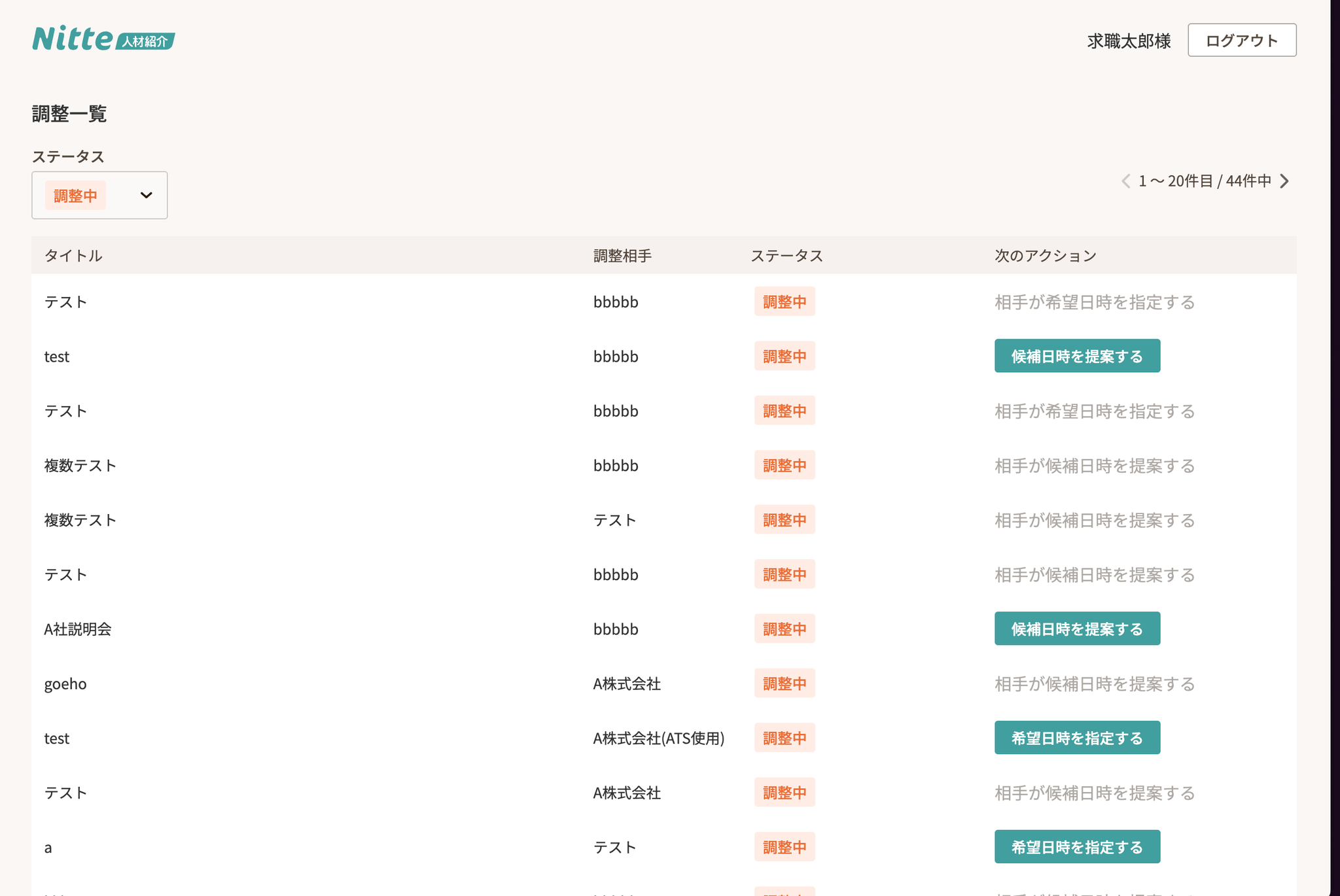 企業担当者 / 求職者側でも、自身の調整一覧を確認することができます。