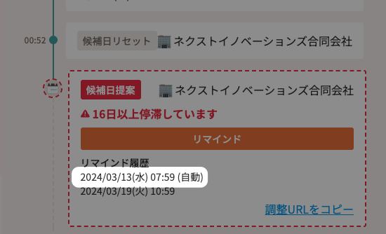 毎日指定した時刻に、エラーの調整に対してリマインドを自動送信します。